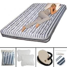 Do a lot of camping? Have guests popping over? Are you the one popping over friend's and family's houses? Well, be prepared with this instant Air Cloud Full Sized Inflatable Mattress. Now you can be ready wherever you go and enjoy a cozy, comfortable night's sleep quickly and easily. Instead of looking around for expensive "D" batteries, the Air Cloud Inflatable Mattress comes with a handy foot for blowing it up and deflating it after use. No more worrying at the campsite - the foot pump is always ready to go to work. A patch kit and carrying bag are also included for you. There are even two inflatable pillows that you can blow up to your desired softness. This set is everything you need for you and your friends to be ready for a great night's sleep wherever you go! Features: Full Sized Mattress - 51.5" x 72" x 7". Foot Pump for inflation and deflation. Carrying Bag and patch repair kit. Folds down to approximately 17" x 14" x 5.5" in bag for easy storage. Includes two pillows measuring approximately 15" x 13" x 7". Great to have to accommodate friends, family or yourself!